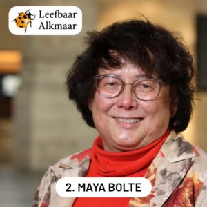 Ik ben Maya Bolte en woon sinds 1981 in het mooie Emmakwartier. Daar was ik voorzitter van de wijkvereniging totdat ik in de gemeenteraad werd gekozen. Met mijn man heb ik twee jongetjes uit Thailand geadopteerd. Zij zijn inmiddels volwassen en zijn een bron van vreugde voor mij.